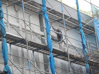 (下、本日は雨ですが、第3棟の外壁塗装工事は続いています)