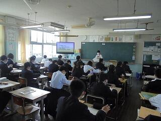 本日は木曜校時の6時間授業です。5、6時間目に県立高校説明会(3年生)が予定されています。保護者の皆様は南門(裏門)からお入りいただきますようお願いします。本日の生徒の皆さんの下校予定時刻は16時15分頃を予定しています。