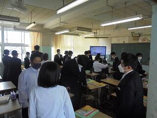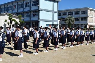 本日は木曜校時の6時間授業です。本日は朝、全校集会、6時間目平和学習(1年生)が予定されています。本日の生徒の皆さんの下校予定時刻は16時15分頃を予定しています。