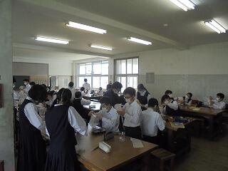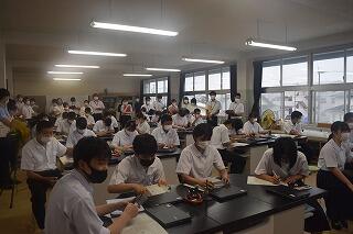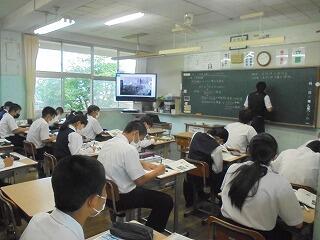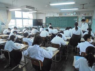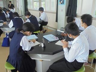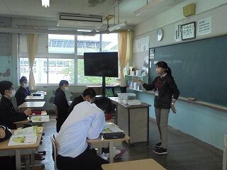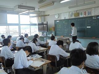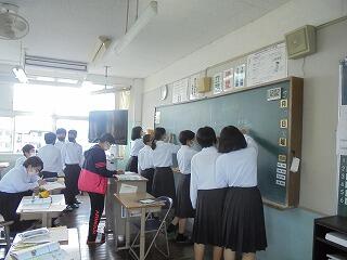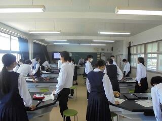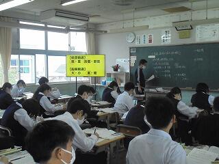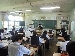 (下、理科の公開授業の様子です。本日は高校の先生方が授業の様子を見に来られています。)