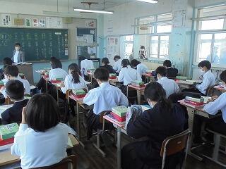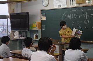 本日は水曜校時の5時間授業です。本日から朝自習の時間に読み聞かせが始まりました。本日は読み聞かせボランティアの方5名が来校いただき、読み聞かせをしていただきました。本日の生徒の皆さんの下校予定時刻は15時00分頃を予定しています。