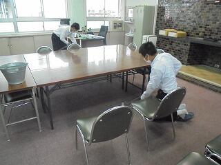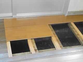 (下、図書室の床の修理を業者の方にしてもらいました。)