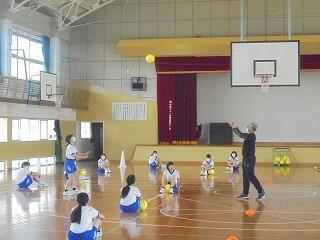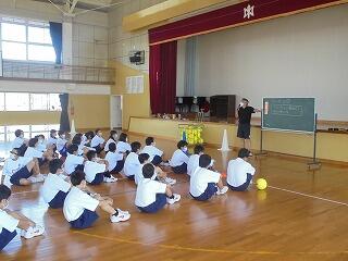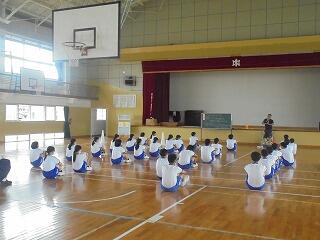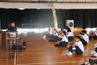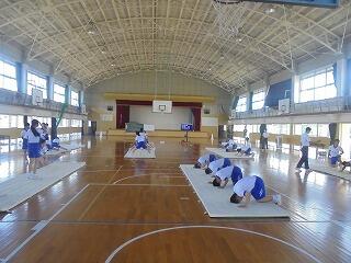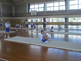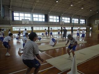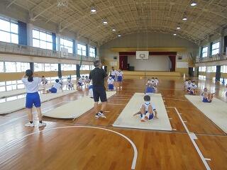 (下、3年生の体育(マット運動)の授業の様子です。)