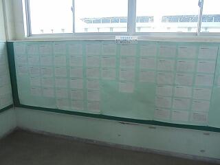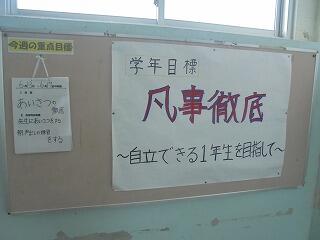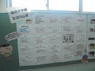 (下、1学年の学年掲示板の様子です。学校のルールについて掲示しています。)