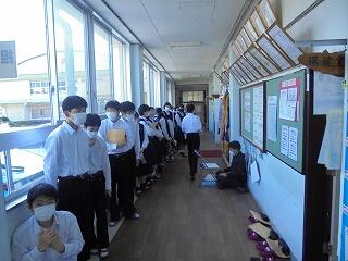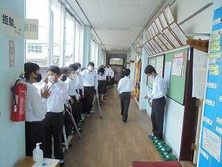 本日は特別時間割の6時間授業です。本日は職員による月に1度の校内安全点検の日となっています。より良い教育環境づくりに努めて参ります。本日の生徒の皆さんの下校予定時刻は16時15分となっています。