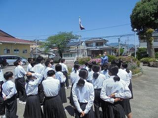 本日は心電図検査(1年生)が予定されています。なお、本日は今年度初めてのALT訪問日となっており、今年度からクマノ アイコ先生が本校に来校されます。なお、先日から部活動が再開しています。感染症対策、暑さ対策を行いながら、活動内容を工夫し行っていきます。