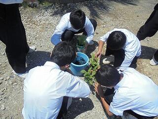 (下、2年生の技術の授業の様子です。本日はペットボトル鉢の作成を行いました。)