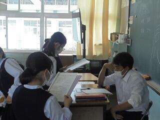(下、3年生の総合的な学習の時間の進路学習の様子です。)