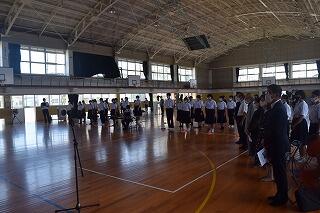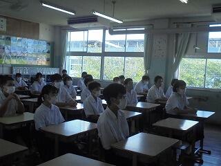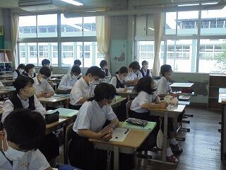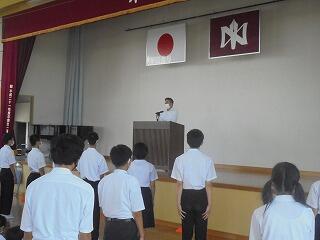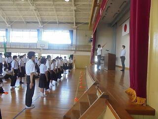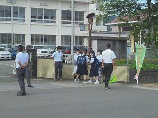 本日は金曜校時の6時間授業です。昨日は延岡市が今年全国最高気温を観測し、暑い日々が続いています。本校においては体育の授業や部活動など熱中症が心配される活動も多くありますが、水分補給を適宜行うなど熱中症対策を行いながら教育活動を進めて参ります。本日の生徒の皆さんの下校予定時刻は16時15分頃を予定しています。