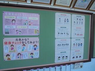 (下、保健室前の掲示物です。適切に保健室を利用しましょう。)