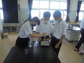 (下、2年生の理科の授業の様子です。本日は化学変化の実験を行い、理解を深める授業が行われました。)