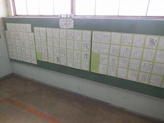 (下、校内の掲示物、第3棟1・2階踊り場、1年生の掲示物)