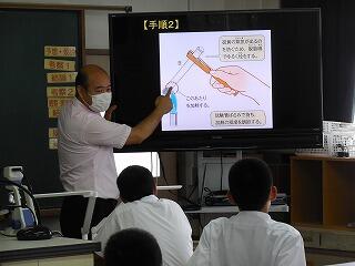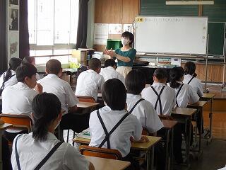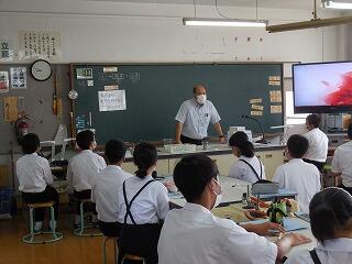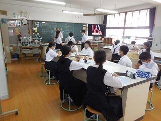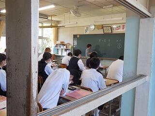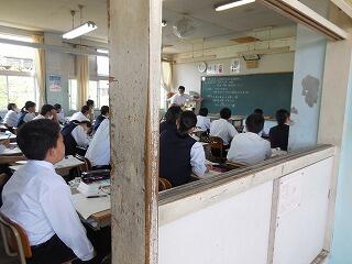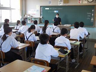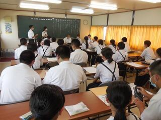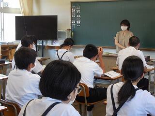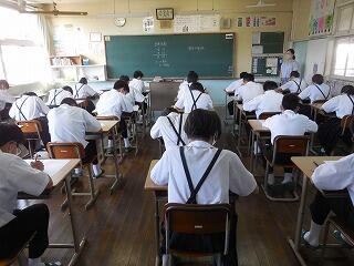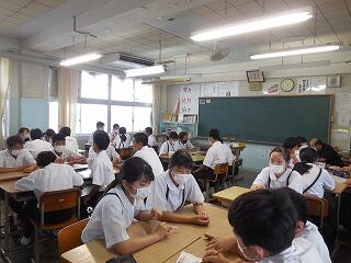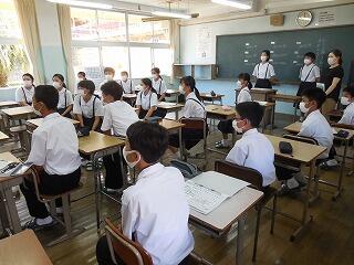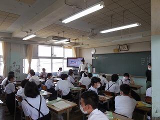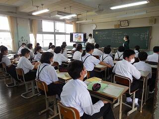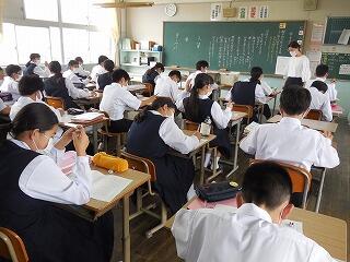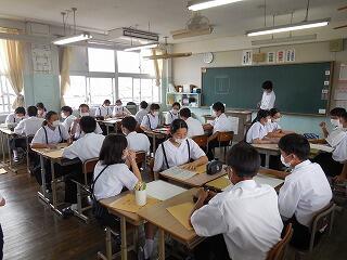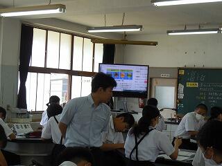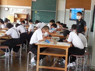 (下、本日は2年生の授業風景です、2年1組社会、舟津先生です)