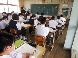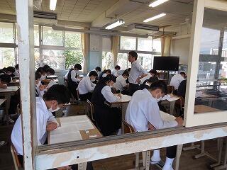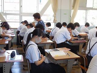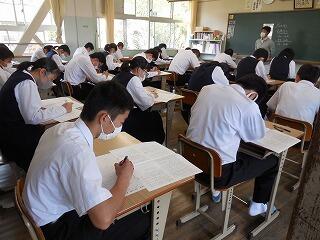 今日は朝自習に時間に、学級専門委員会が実施されました。また、3年生は今日から第1回の実力テストが始まっています。教科は1時間目が国語、2時間目が理科、3時間目が英語です。明日は社会と数学です。実力テストは、3年生の進路の参考になる重要なテストです。3年生には自分の実力を確認するためにもベストを尽くして欲しいと思います。