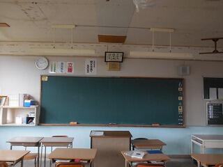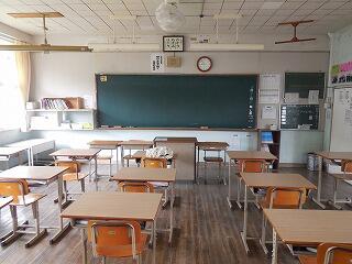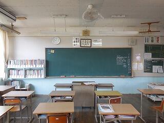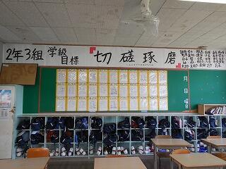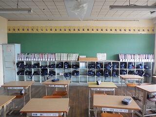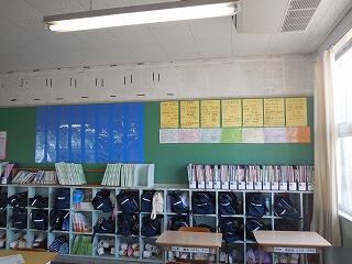 (下、教室紹介、3年1組の教室です、前と後ろ)