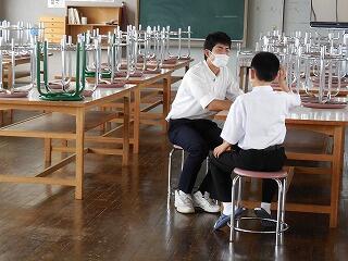 本日は臨時休業中の登校日の5日目です。参観日等がなかなか設定できないため、今後できるだけホームページを使って生徒の皆さんの様子をお伝えしていきます。今日は6時間目に自転車点検が実施されるため、殆どの生徒の皆さんが自転車で通学してきました。自転車点検時のチェック項目は、ライト、ベル、ブレーキ、反射板、2重施錠、防犯登録、ヘルメットの有無の7項目です。御家庭でも自転車の点検や交通安全に関する御指導をお願い申し上げます。ところで、昨日(5月21日)の夕刊デイリーに、本校2年生の本田さん姉弟が、お小遣いを使って市内の児童施設にマスクを寄付したとの記事が掲載されていました。社会に目を向け実際に行動する姿は、大変素晴らしいことだと思います。