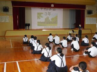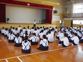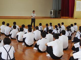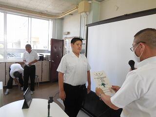(下、表彰伝達、県中体連大会で相撲競技が優勝しました)
