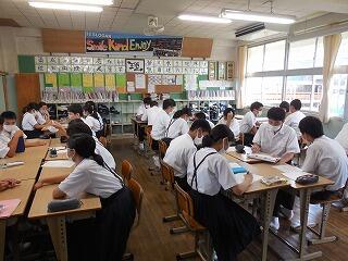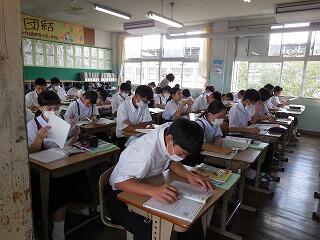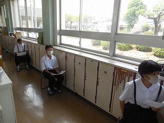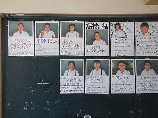 9月になりました。本日は防災の日です。今日と明日本校は全学年実力テストになります。本日は1~3時間目、明日は1~2時間目です。また、本日から生徒会選挙運動が始まりました。朝の校門前でのあいさつ運動、ポスターの掲示、給食時間には応援者による応援演説が行われます。
