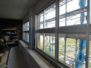 本日は、全職員で24日からの新学期に備えて準備や打ち合わせ等を行っています。生徒の皆さんには、体調管理をしっかり行い元気に登校して欲しいと思います。第3棟のアルミサッシ工事は終了していますが、外壁の塗装工事は、9月いっぱいかかる見込みです。登校時は十分注意してください。