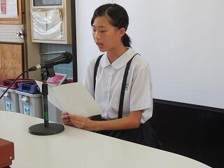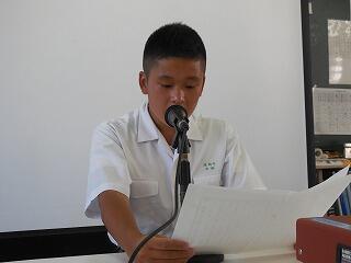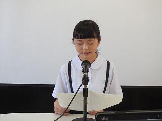 (下、始業式で2学期の抱負を代表4人が発表しました、1年生)