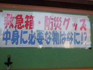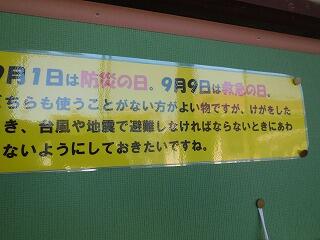 (下、校内掲示、保健室前です。9月1日の防災の日関連です)