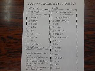 (下、保健室前にある防災グッズ、救急箱に必要なリストです)