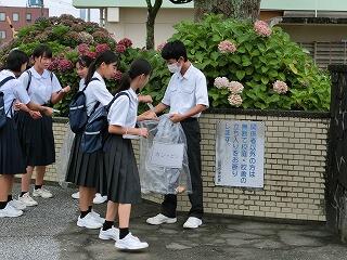 生徒会の恒例行事である朝の地区清掃活動(ゴミ拾い)が実施されました。雨が気になりましたが、今月も多くの生徒が自主的に参加していました。通学路の燃えるゴミ、燃えないゴミが写真のように集まりました。私たち生徒自身もゴミのポイ捨てをしないようにしたいですね。