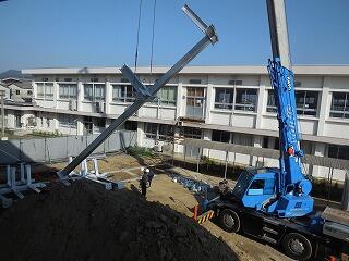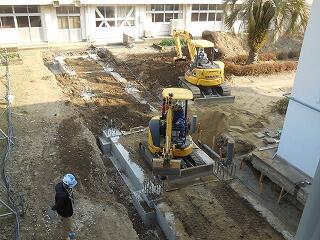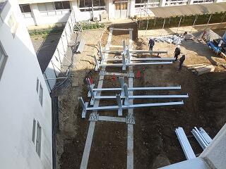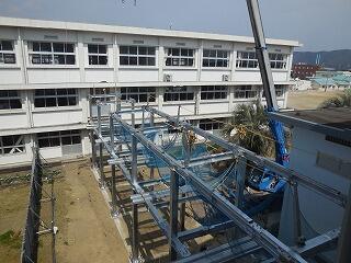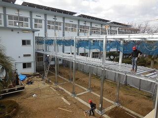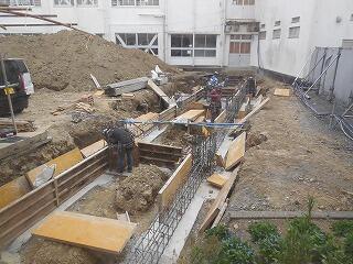 (下、渡り廊下の改修工事の様子、2階部分のコンクリート流し込みの様子です)