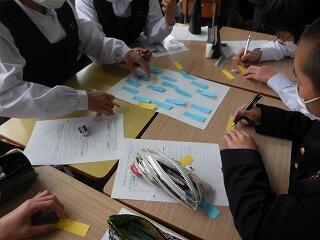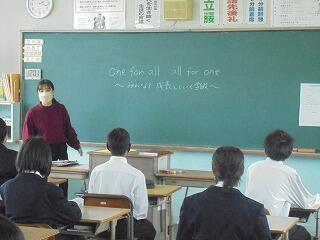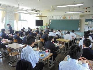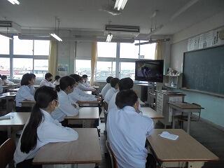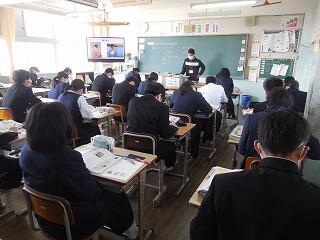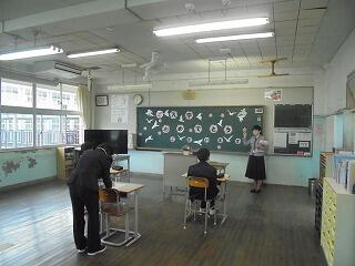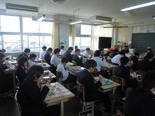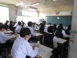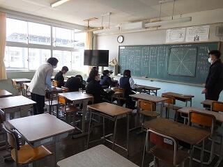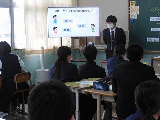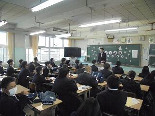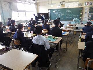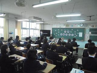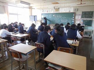 (下、3月4日の学活の研究授業の様子、1年2組です)