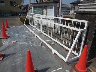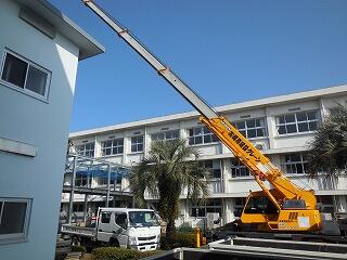 (下、校門の塗装を技術員の皆様の手で行っていただいています)