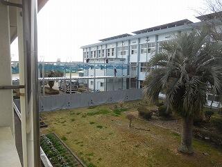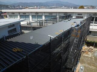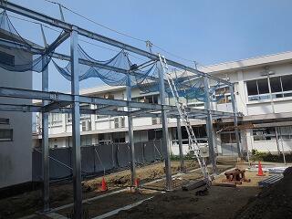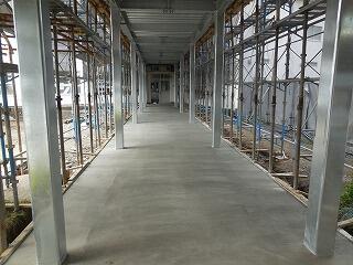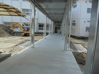 (下、渡り廊下の改修工事の様子です、1階第1棟から第2棟間です)