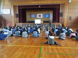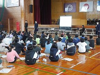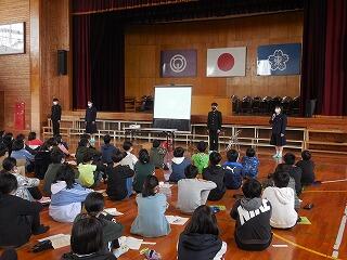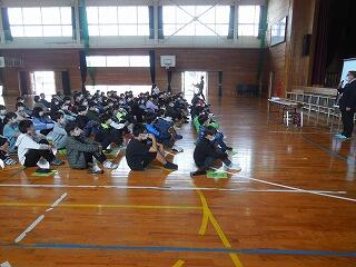 (下、東小学校での入学者説明会の様子です、学習、生活、生徒会活動について説明をしました)