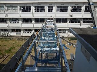(下、2棟と3棟間の渡り廊下の改修工事の様子)