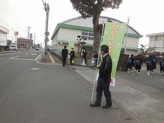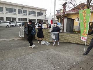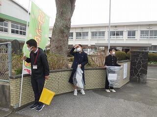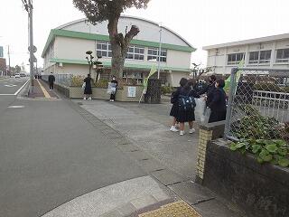 (下、朝のクリーンウオークデーの様子、校門付近)
