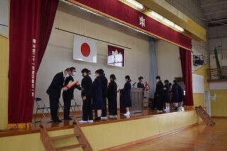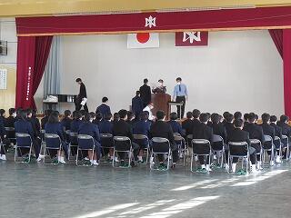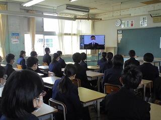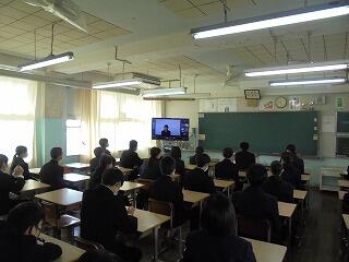 (下、修了式の様子です、リモートで行いました、式の前に表彰を行いました)