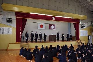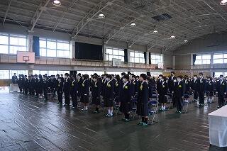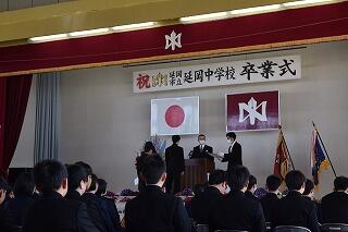 本日は第75回延岡中学校第75回卒業証書授与式です。101名が本校を卒業します。式後1年生は下校(午前11時10分~)2年生は式場撤収後下校(12時~)、卒業生は最後の学級活動後下校(12時20分~)となります。