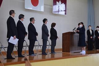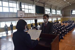 本日は学年末休業です。9時30分から離任式が行われます。1・2年生は8時30分~9時までに登校、卒業生は9時から9時20分までに直接体育館に集合となります。部活動は午後2時から実施となります。下記は転任等をされる先生方の紹介文書になります。