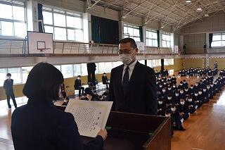 新入生の保護者の皆様におかれましては、お足元の悪い中お越しいただきましてありがとうございました。お子様の実りある中学校生活実現のため、本校職員一同努力して参りますので本校教育への御理解と御協力をよろしくお願いいたします。