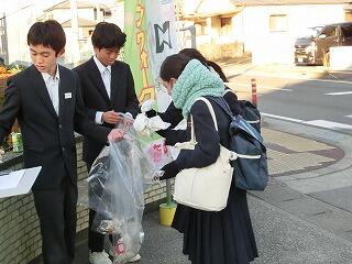 毎月1回実施している生徒会行事のクリーン・ウォークデーが実施されました。この活動は、8年前の先輩方から始まった活動で、登校中に通学路のゴミ拾いをする活動です。今日も寒い中、交通安全に注意しながら多くのゴミが集まりました。
