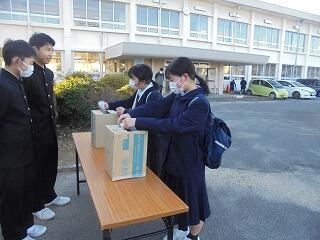 生徒会が主体となって、能登半島地震の被災地への義援金を集めました。生徒会では、募金箱をつくったり、朝の募金活動を行ったりするボランティアを募集しました。した。