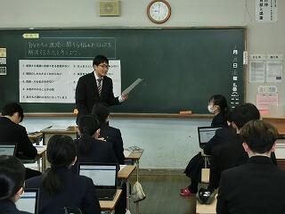 本日6時間目は1年生(学級活動)の研究授業でした。授業のねらいは、「友だちからのアドバイスによって、自分の「よさ」について気付き考える」でした。どの生徒も級友から、自分の知らなかった自分のよさを見付けてもらい、うれしそうな表情を見せていました。この経験を進路選択や職業選択にも生かして行けるといいですね。