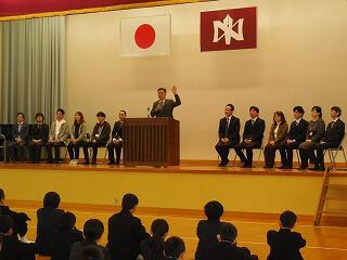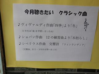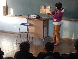 本日朝のあいさつ運動は、吹奏楽部の皆さんが行ってくれました。また、朝自習の時間には、1年生を対象に読み聞かせが実施されました。1組は「ねずみのよめいり」「羽田の水舟」「ともだちや」、2組は「てぶくろ」「ゆきがたくさんつもったら」「ちいさなはくさい」「こんこんさまにさしあげそうろう」、3組は「じゃない!」「ぜつぼうの濁点」「だいじょうぶだいじょうぶ」を読んでいただきました。朝のお忙しい中、読み聞かせをしていただいたゆめの宅急便・卒業生保護者の皆様、ありがとうございました。次回は1月28日(火)、2年生を対象に読み聞かせが計画されています。よろしくお願いします。午後は、音楽の初任研指導のため岩村先生(岡富中)が来校されました。また、今日から「全ての学校に新聞を」運動で、全クラスに新聞(3学期は読売新聞)が配付されています。他に今週は清掃徹底週間・校内安全点検集会にもなっています。無言・気づきの清掃の徹底や校内危険箇所の発見と対応などをしっかり行っていきたいと思います。