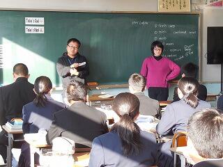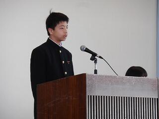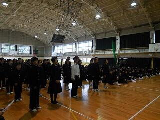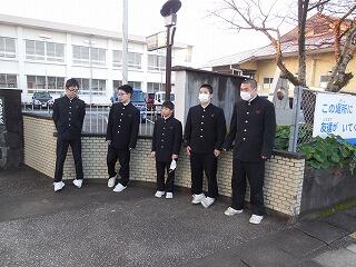 本日朝は、バスケットボール部とサッカー部があいさつ運動をしてくれました。また、本日はALTのチャック・シオン先生が来校されています。素晴らしい発音で3年生の小テストの解答をされていました。3学期が始まりインフルエンザ流行の兆しがあります。本日も5名の生徒の皆さんが、インフルエンザで欠席との連絡がありました。この3連休は、人混みや不要な外出は避け、規則正しい生活と十分な睡眠を確保して欲しいと思います。部活動生は大会や練習試合等がある場合は、手洗い・うがい・マスク着用等を徹底してください。今月末には、いよいよ私立高校入試が始まります。3年生を学校全体で応援していきましょう。