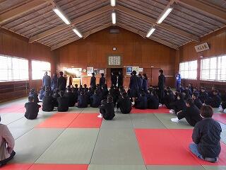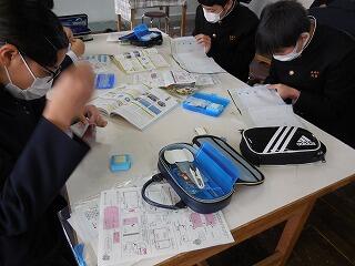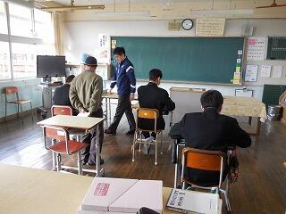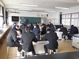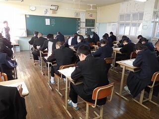 本日は卒業アルバム写真の撮影等が行われています。3年生は先週の入試説明会を経ていよいよ受検体制になってきています。写真は1時間目の技術(2年生)、保体・柔道(1年生)、掲示物は3年生です。