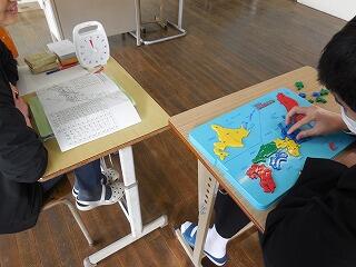(下、1年生、数学の様子、はげまし隊の皆さん)