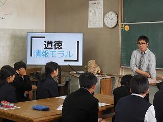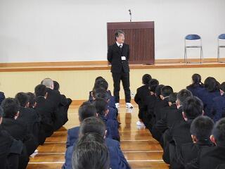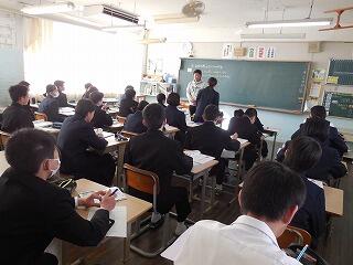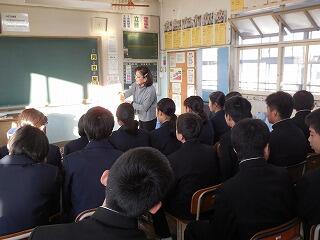 本日3時間目にふるさと教育推進事業「子どもたちに伝えたいこと」が、1年生を対象に実施されました。この事業は、各講師の皆様の講話を通して、働く意義や目的を考え自分の生き方や将来について自覚することをねらいとして行われています。今回の講師は、千徳酒造社長の門田賢士様、旭化成メディアカルの清水将也様、延岡市役所の男女参画室専門主事の佐藤純子様でした。各分野で活躍しておられる講師の皆様の貴重な講話を聴くことができました。また、市教委から学校支援アドバイザーで前校長の神崎勝久先生に来ていただきました。皆様、お忙しい中ありがとうございました。