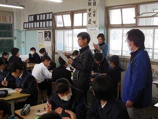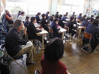 本日はリフレッシュデーで6時間目に教育相談が行われます。また、午後4時には県立高校推薦入試の志願状況も発表になります。今週は明日火曜日からいよいよ私立高校入試が始まります。3年生には力を発揮しして欲しいと思います。朝の時点で、インフルエンザによる欠席は4名です。まだまだ流行する可能性がありますので、健康管理を学校でもしっかりとおこなっていきます。また、午後、中学校読書推進事業加配配置校訪問で、県教育庁義務教育課より柚木山尚未副主幹、川﨑晶彦副主幹、北部教育事務所教育推進課吉田健太郎指導主事、市教委より神崎勝久学校支援アドバイザーが来校されました。本事業について様々な意見交換ができました。また、御指導ありがとうございました。
