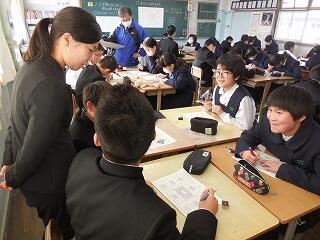 3年生は昼休みに自学自習を行っています。個別に指導を受ける人もいます。6時間目は、2年生が明日11月19日(火)から21日(木)までの3日間実施される職場体験学習の事前確認を行いました。市内48事業での職場体験学習で、働く意義や進路意識を高めて欲しいと思います。3年生は保健体育の授業で選択(バスケットボールとタグラグビーを行っています)。