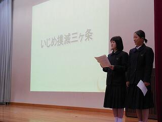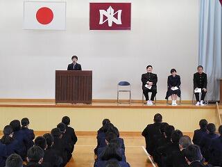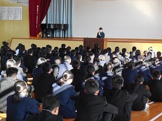 インフルエンザの感染拡大が心配されています。本日は1・2年生を中心に7名が休んでいます。学校では、休み時間の手洗い・うがい、教室の換気をしっかりとおこなっていきます。ところで、給食委員会の皆さんが毎日大変頑張って活動しています。そのお陰で、給食の準備後片付けが大変スムーズに進んでいます。楽しくかつ安心安全な給食のためにも大変貢献しています。こうした活動が学校全体に広がっていくことを期待しています。明日は今年最初の土曜授業です。月曜日の3、5、6時間目の時間割で授業があります。生徒の皆さんは、頑張って登校してください。