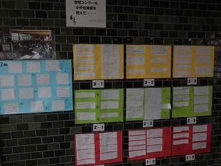 本日延岡総合文化センターにおいて、第53回延岡市小・中学校音楽祭が開催されています。本校からは3年2組がプログラムの5番目に出場しました。会場に中学生らしい素晴らしい歌声が広がりました。涙して聴いている方もいて、非常に感動的な合唱でした。3年2組の皆さん、練習を含めこれまで御苦労様でした。